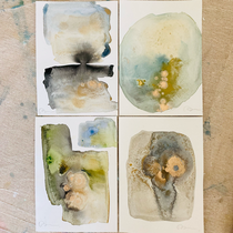 In this series, I use natural materials such as earth pigments, sumi ink, sand, wood, and minerals (crystals) to express natural phenomena of the Earth, symbolized by soil and water.