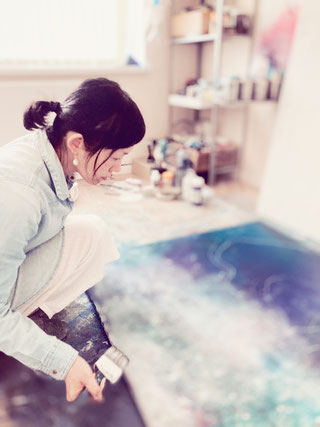 My creative practice is influenced by Abstract Expressionism, psychology, astrology, spiritual traditions such as Shinto and Zen, and contemporary metaphysical thought. Additionally, daily insights, the natural order of the world, connection to the universe and the vast unconscious serve as the foundation of my artistic expression.